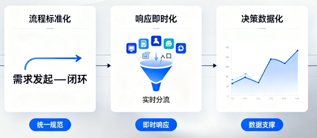 响应即时化:整合多渠道服务入口,实现需求实时接收与智能分流,缩短响应周期